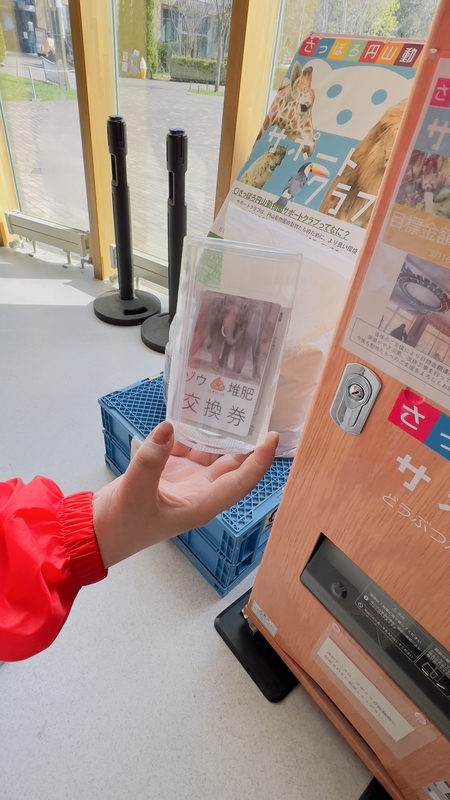 寄付の自販機に500円を入れてカードを取り出してカウンターに持っていくと堆肥がもらえます。