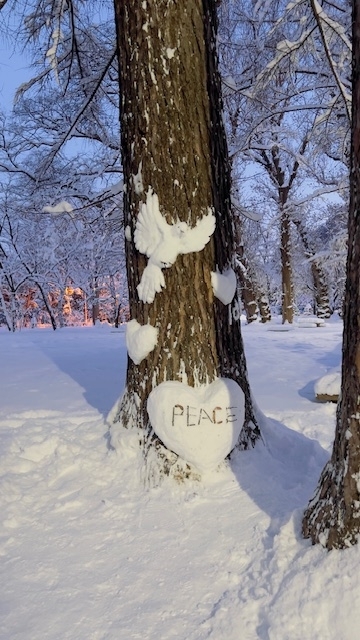 円山公園では冬になるとこうやって樹木に雪で飾りを作ったり雪像を作って遊ぶ人が多いのですが、通りかかりの観光客も喜んで写真を撮っていました。